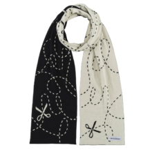 This unisex scarf is inspired by the Cut Here dress from the Classics collection. The scarf can be worn on both sides: on one side the background is black and the design is cream. On the other side you see the design in reverse: cream as a background with the design in black.