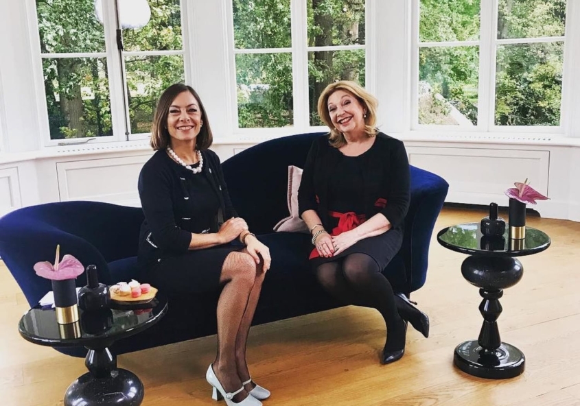 Cécile Narinx (rédactrice en chef de Harper’s Bazaar Netherlands) et Janny van der Heijden (Heel Holland Bakt -Le Meilleur Pâtissier-) portent toutes deux Michael Barnaart lors d’une interview pour HarpersBazaar.nl. Bientôt en ligne ! (Source: instagram.com/cecilenarinx)