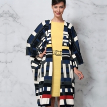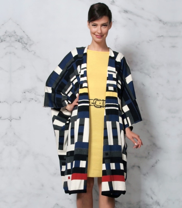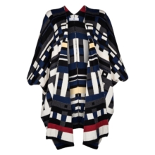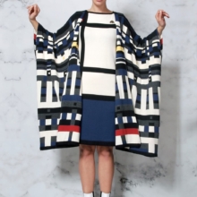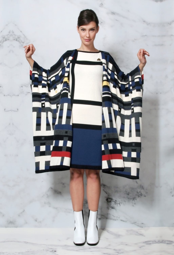 De Boogie poncho is een ode aan De Stijl. Het ontwerp is een aanvulling op de iconische Mondriaanjurk en is tot stand gekomen in samenwerking met het Kunstmuseum Den Haag, het museum met de grootste collectie Mondriaanschilderijen ter wereld.