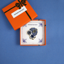 Elke broche heeft een uniek nummer en komt in een cadeaudoosje.