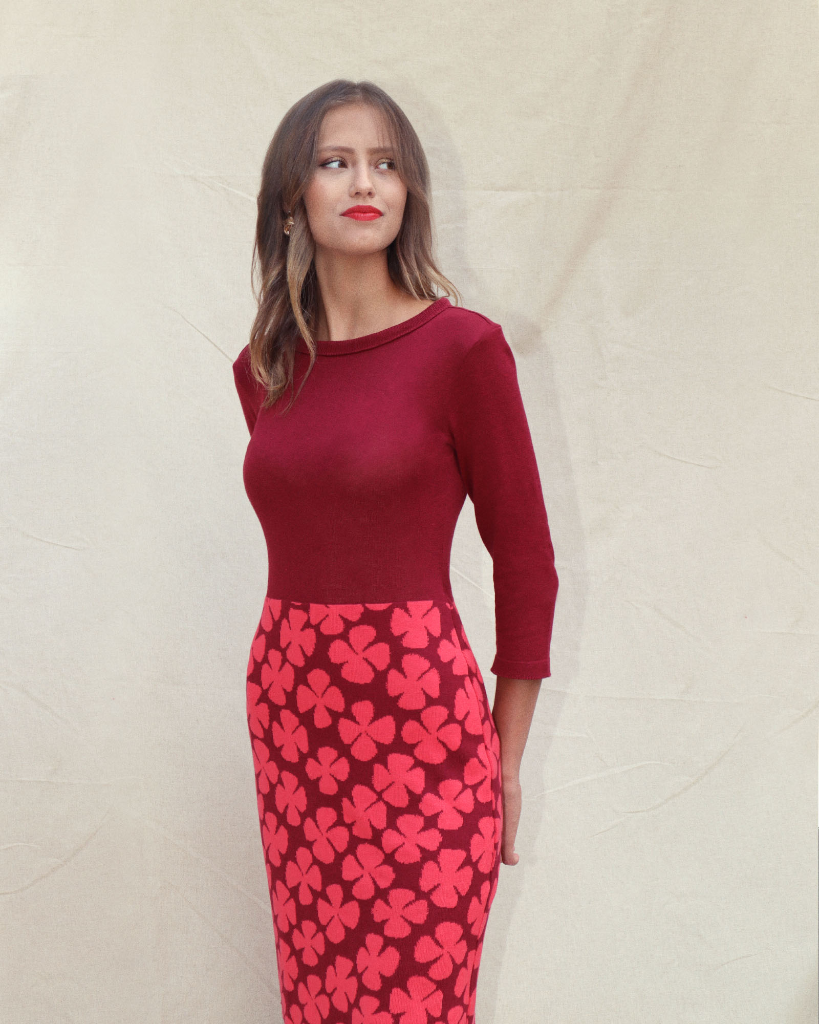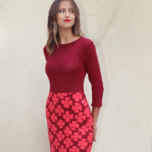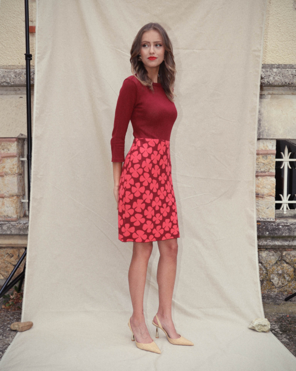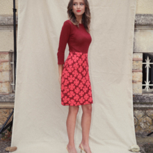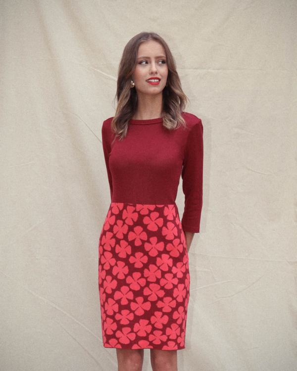 Het lijfje is dun gebreid. De onderste helft van de jurk is dubbel gebreid en daardoor dikker van stof. Dit zorgt ervoor dat de jurk ideaal is voor alle seizoenen en het rokgedeelte mooi glad valt.