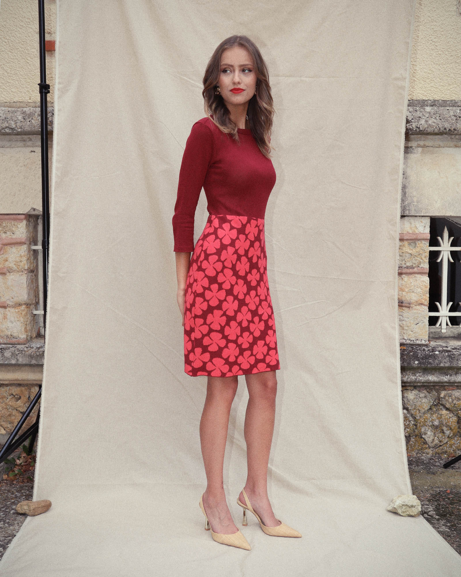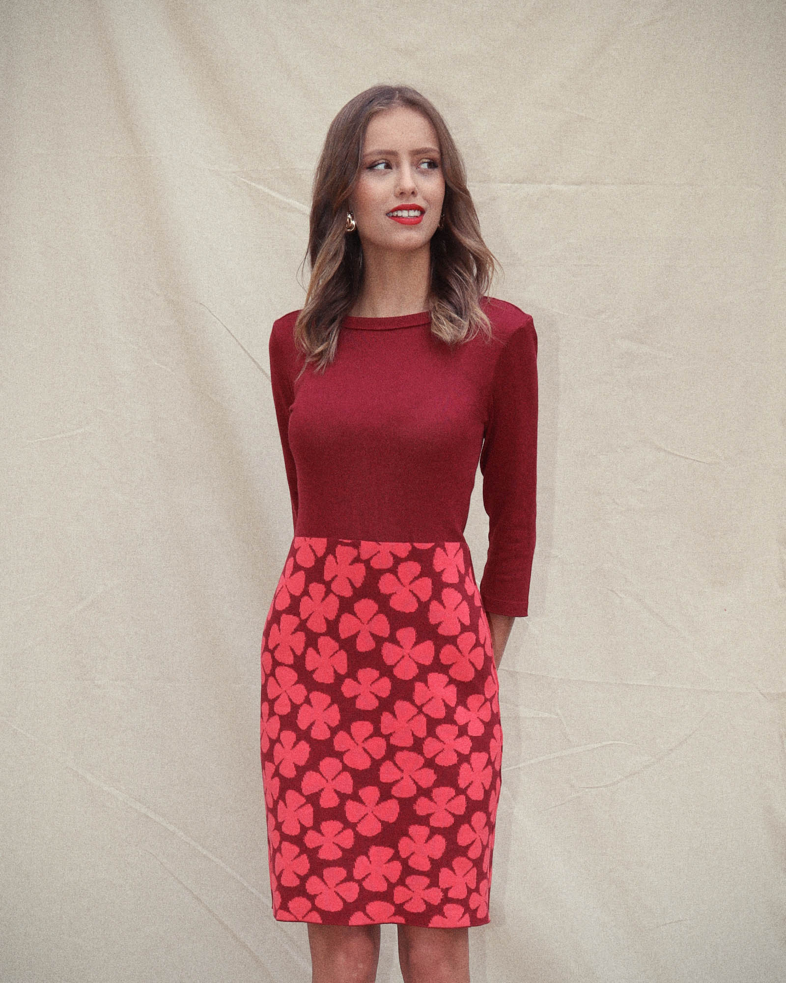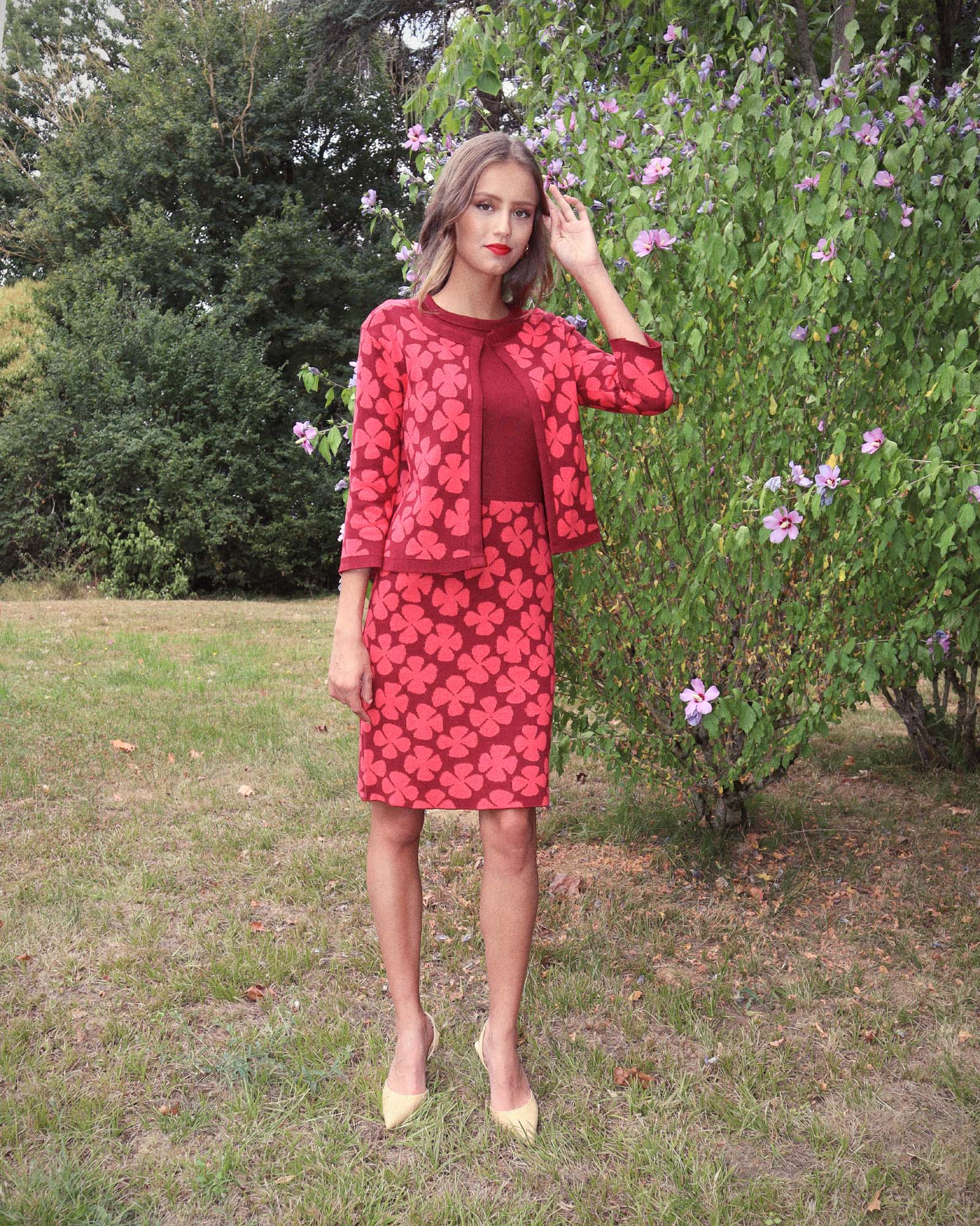 Kleur: malagarood met kreeftroze