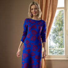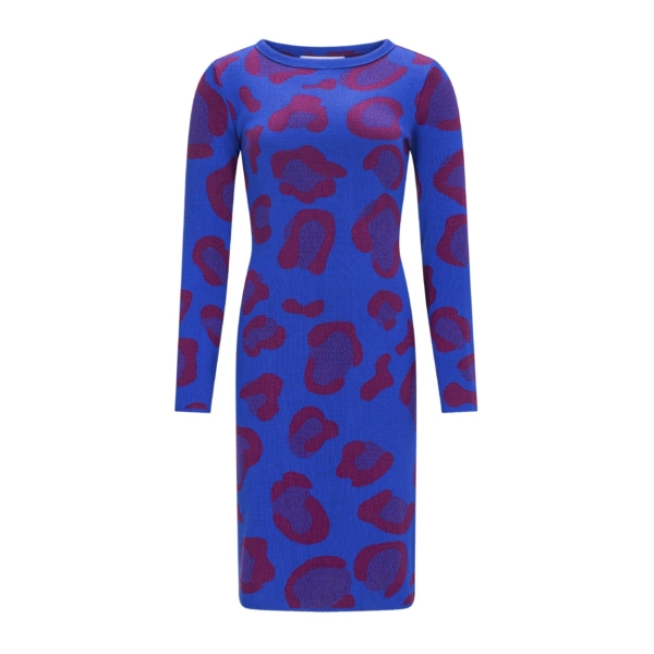 Deze kokerjurk heeft een tijdloos luipaardmotief (panter) in een sprekende kleurcombinatie. Een zinderend en tijdloos ontwerp! Deze kokerjurk is dubbel gebreid en heeft lange mouwen.
