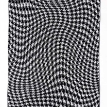 In samenwerking met deze musea heeft Michael Barnaart deze sjaal ontworpen. Pied-de-poule (ook bekend als houndstooth) is een eeuwenoud archetypisch textielpatroon. Ik heb het dessin vervormd, als ode aan de revolutionaire vlakvullingen en optische illusies van Escher, waardoor het dessin lijkt te bewegen. Vandaar: ‘pied de mouvement’.