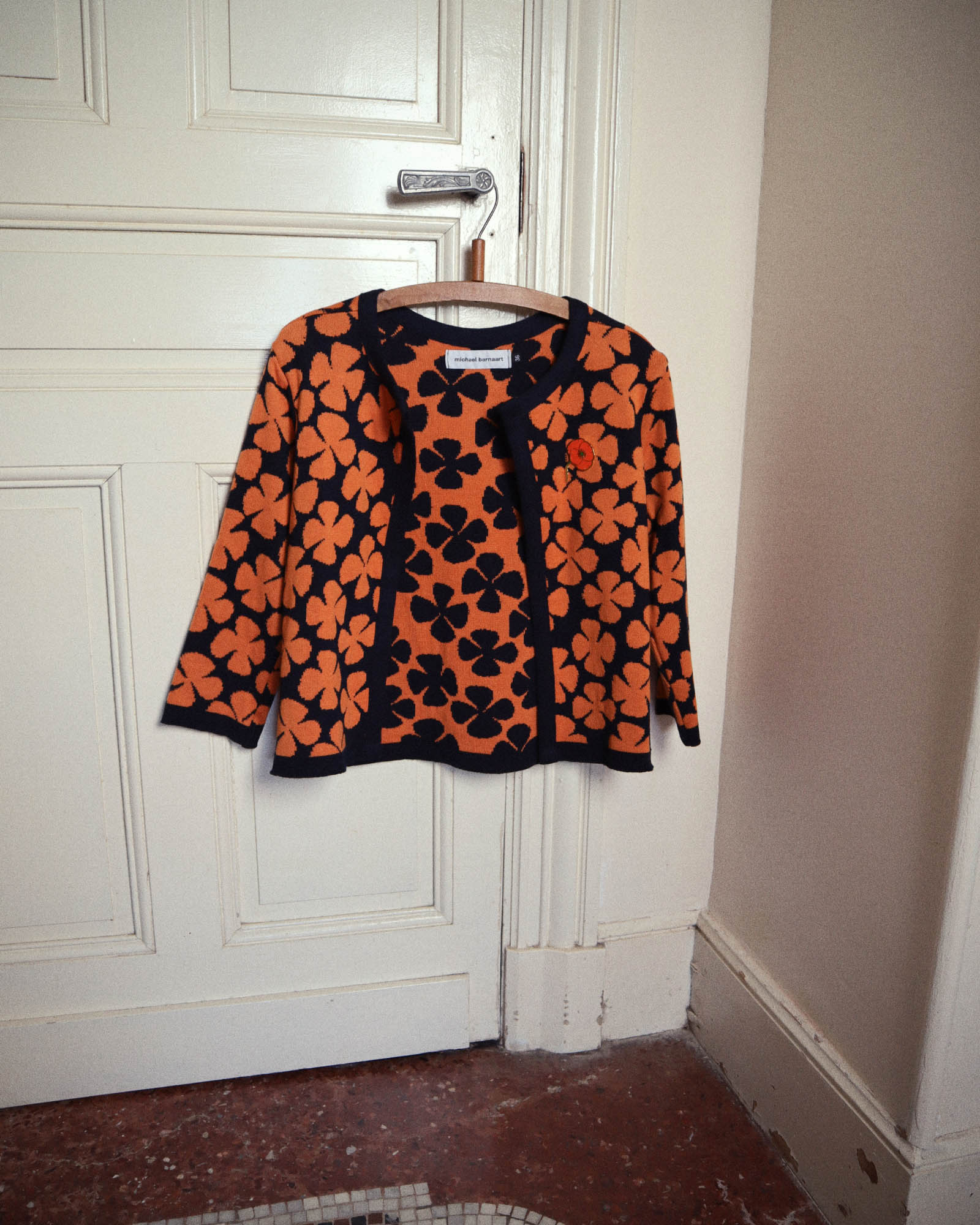 De goudpapaver vormt het uitgangspunt voor dit ontwerp. De bloem is grafisch en frêle tegelijk. Dat inspireerde Michael Barnaart tot het tekenen van een nieuw dessin op basis waarvan hij dit jasje ontwierp. Het vestje heeft driekwart mouwen, geen sluiting of zakken. Dit ontwerp is volledig in Nederland vervaardigd.